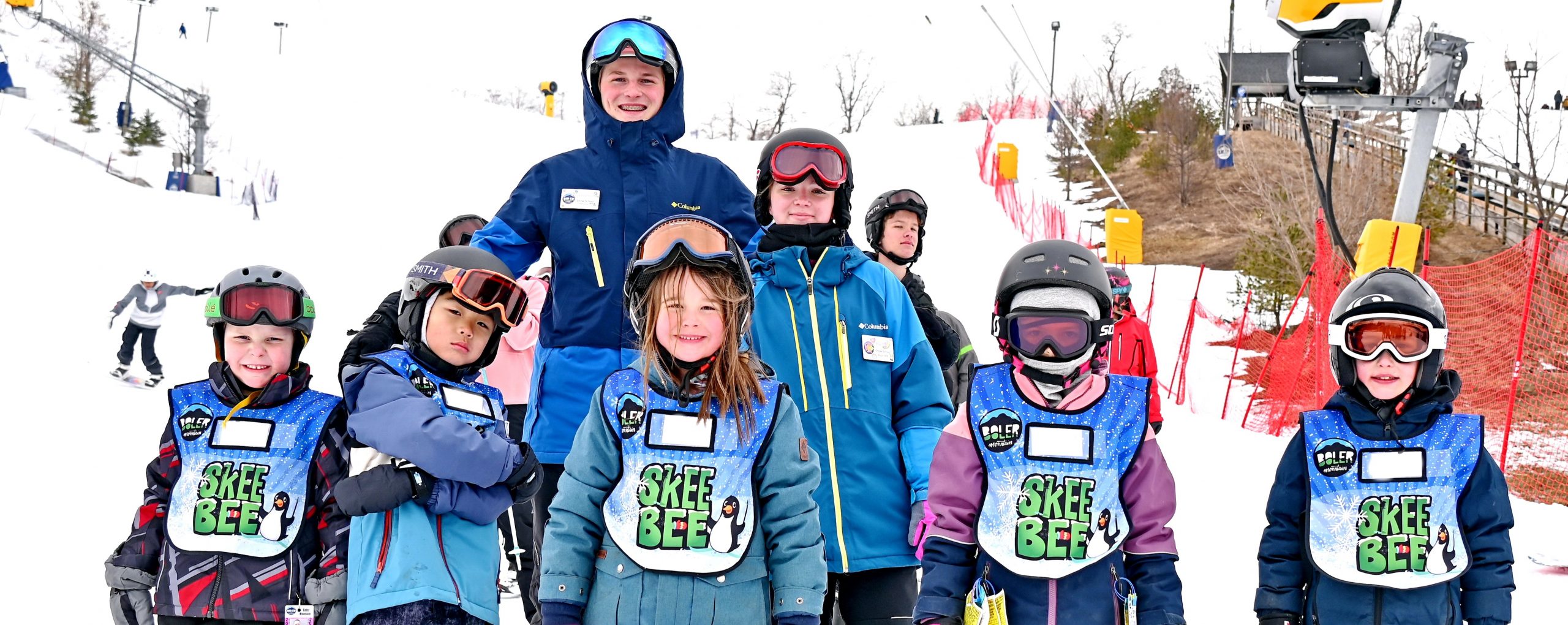 The Skee Bee ski program is designed for children ages 5-6 years. It is an exciting and progressive learn-to program. The emphasis is on developing skills and confidence through mileage, games and fun! The program is designed for children of all levels and children are divided into groups based on experience on the first day. Enrollment is limited in order to maintain classes of six children or less, so REGISTER EARLY. Beginners are encouraged to attend the first few lessons in order to maintain progression with the class. Ages are calculated as of December 31. Skee Bees meet at the base of the beginner hill. Minimum of 5 participants required to run a group lesson.